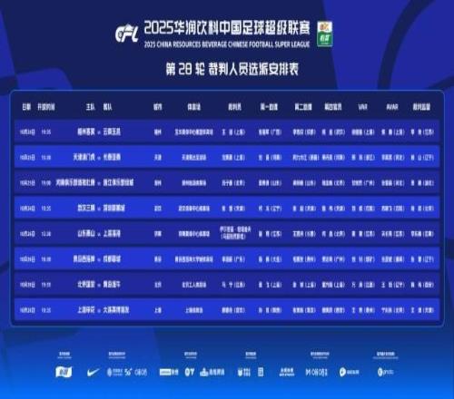 中超第28轮裁判安排公布 体坛周报 2025-10-24 23:36:44 中超第28轮裁判安排公布中国足球 10-24 15:46中超官方公布第28轮裁判选派安排。乌兹别克斯坦裁判员伊尔吉兹·坦塔舍夫将执法山东泰山VS上海海港。马宁执法北京国安VS青岛海牛。 中超 国安 马宁 青岛海牛 中国足球 裁判安排 职业联赛 上一篇: CCTV5直播,大连3外援缺阵,朱鹏宇单箭头+毛伟杰出战申花拒爆冷 下一篇: 惨案诞生!中超保级队耻辱一战:主场被灌4球,惨遭双杀