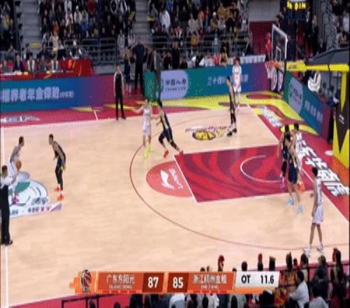 场面处于落后,但广东队没有放弃,还是靠防守,理由全场紧逼连造浙江2次失误,徐杰王少杰艰难制造4罚追回3分,37.8秒,陈家政命中踩线三分助力广东扳平。