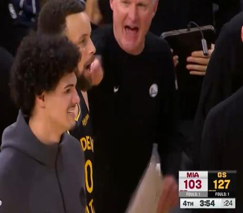 末节仅3分钟场下狂挥毛巾!库里双手举天+大笑露齿科尔治军有方